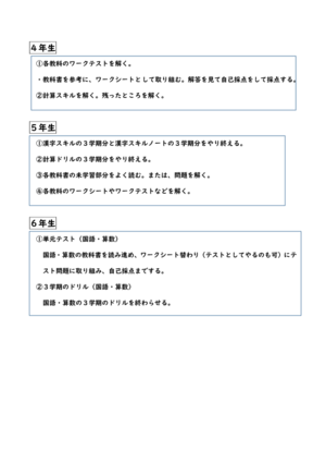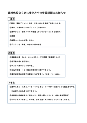 4月20日(月)から4月24日(金)までの臨時休校中の各学年の課題についてのお知らせ