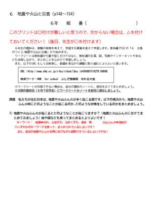 5月4日(月)から5月8日(金)までの臨時休校中の各学年の課題についてのお知らせ
