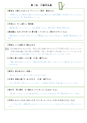 川柳まとめホームページ用(PDF).pdf他の人の作品を見ると勉強になりますね。おたがいの作品を見合うことで、よいものを吸収し合うことができます。