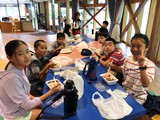 水族館の学習館をおかりして、学園で作っていただいたお弁当で最後の昼食を食べます。