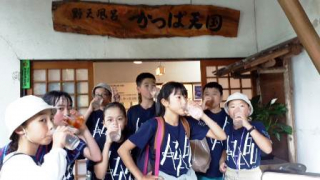 〇 Aチームはバスで飛龍の滝をめざしましたが、雨のため行くことができませんでした。かわりに温泉を満喫しました。