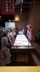 午前のアクティビィティは、鈴廣かまぼこの里にてちくわを作ります。魚のすり身を棒にからませて本格的なオリジナルちくわを作ります。おいしいちくわができるでしょうか。